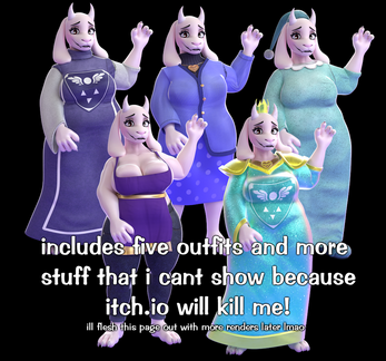 Based on her appearance in UNDERTALE & DELTARUNE, she comes with 5 different outfits: